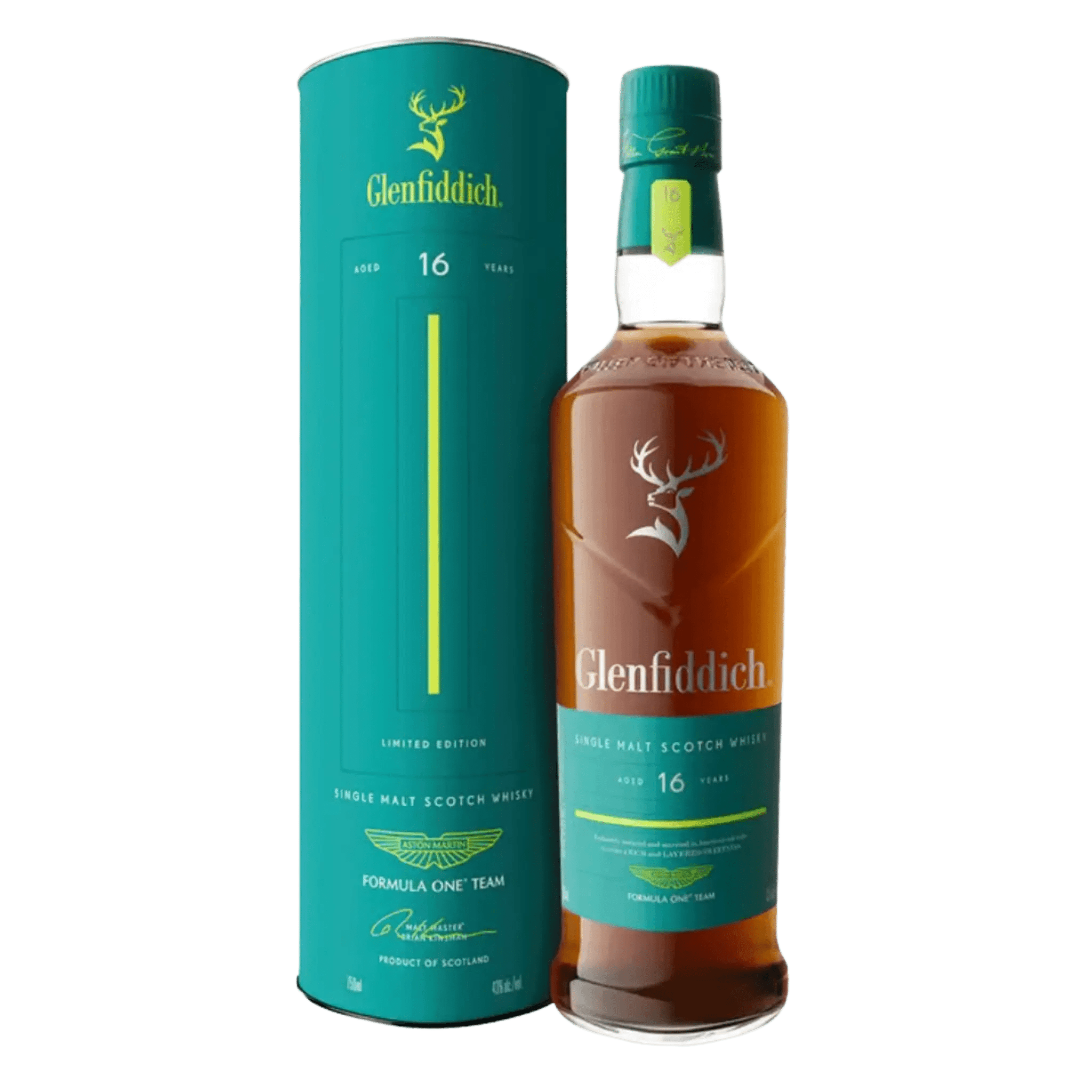Matured for sixteen years, this single malt showcases Glenfiddichs signature fruit forward character enhanced by rich oak influence and layered complexity. The partnership celebrates shared values of excellence and forward thinking, making this bottle a standout choice for Scotch enthusiasts and motorsport fans alike.