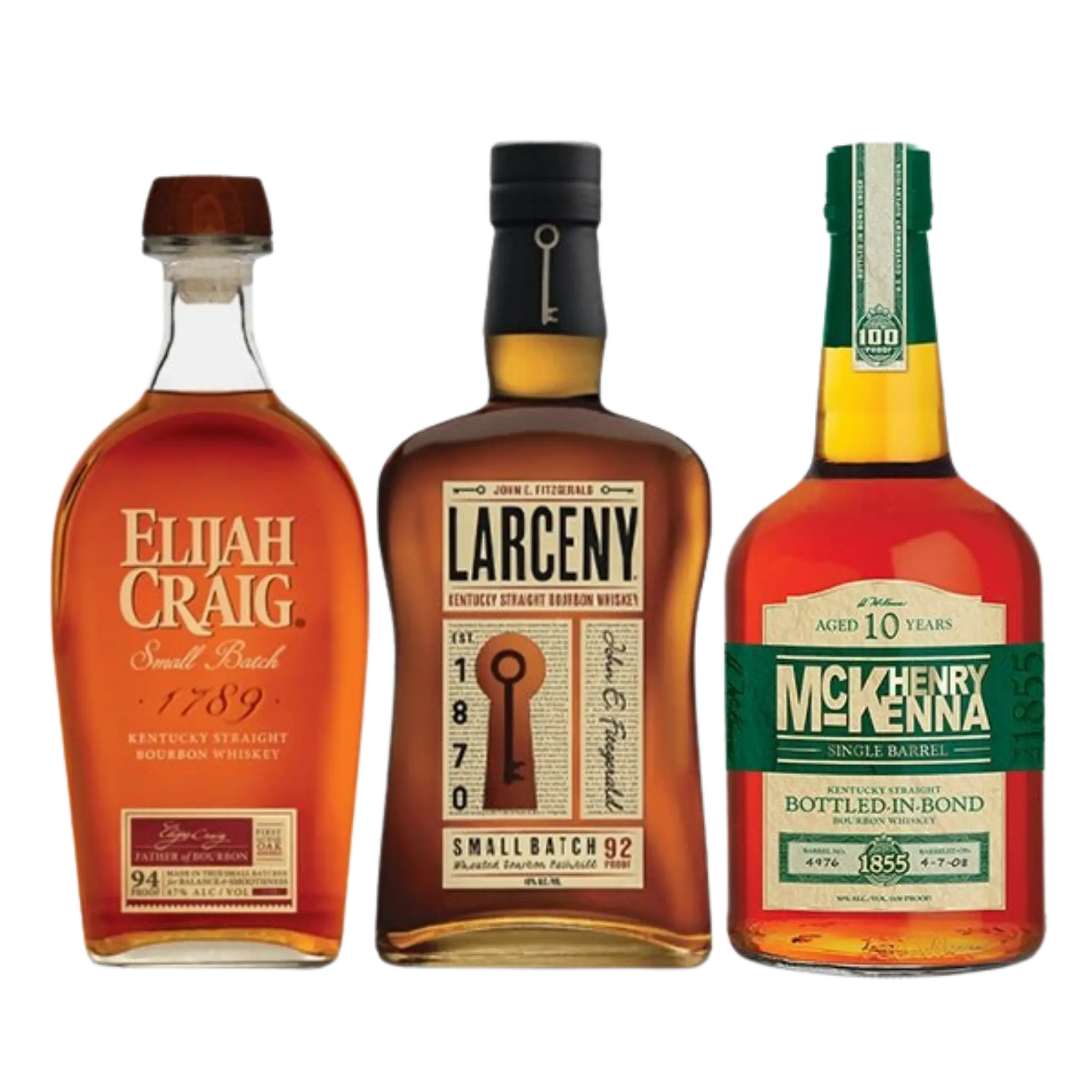 Elijah Craig delivers balanced oak and caramel richness Larceny introduces a softer wheated bourbon profile and Henry McKenna adds depth structure and age driven complexity. Ideal for tastings gifting or building out a home bar this bundle is perfect for bourbon drinkers who appreciate variety quality and tradition.