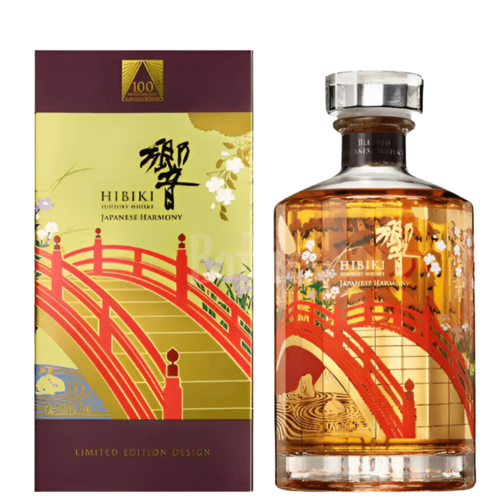 The Hibiki Harmony Japanese Whisky is a special release commemorating the 100th anniversary of the opening of the Yamazaki Distillery, which is one of the oldest whisky distilleries in Japan and a part of the Suntory brand. Hibiki Harmony is known for its smoothness, balance, and complexity, blending malt whiskies from Yamazaki and Hakushu distilleries, as well as grain whisky from Chita distillery. This limited edition bottling likely celebrates the rich heritage and craftsmanship of Japanese whisky-making. If you're fortunate enough to come across a bottle, it's sure to be a cherished addition to any whisky enthusiast's collection.