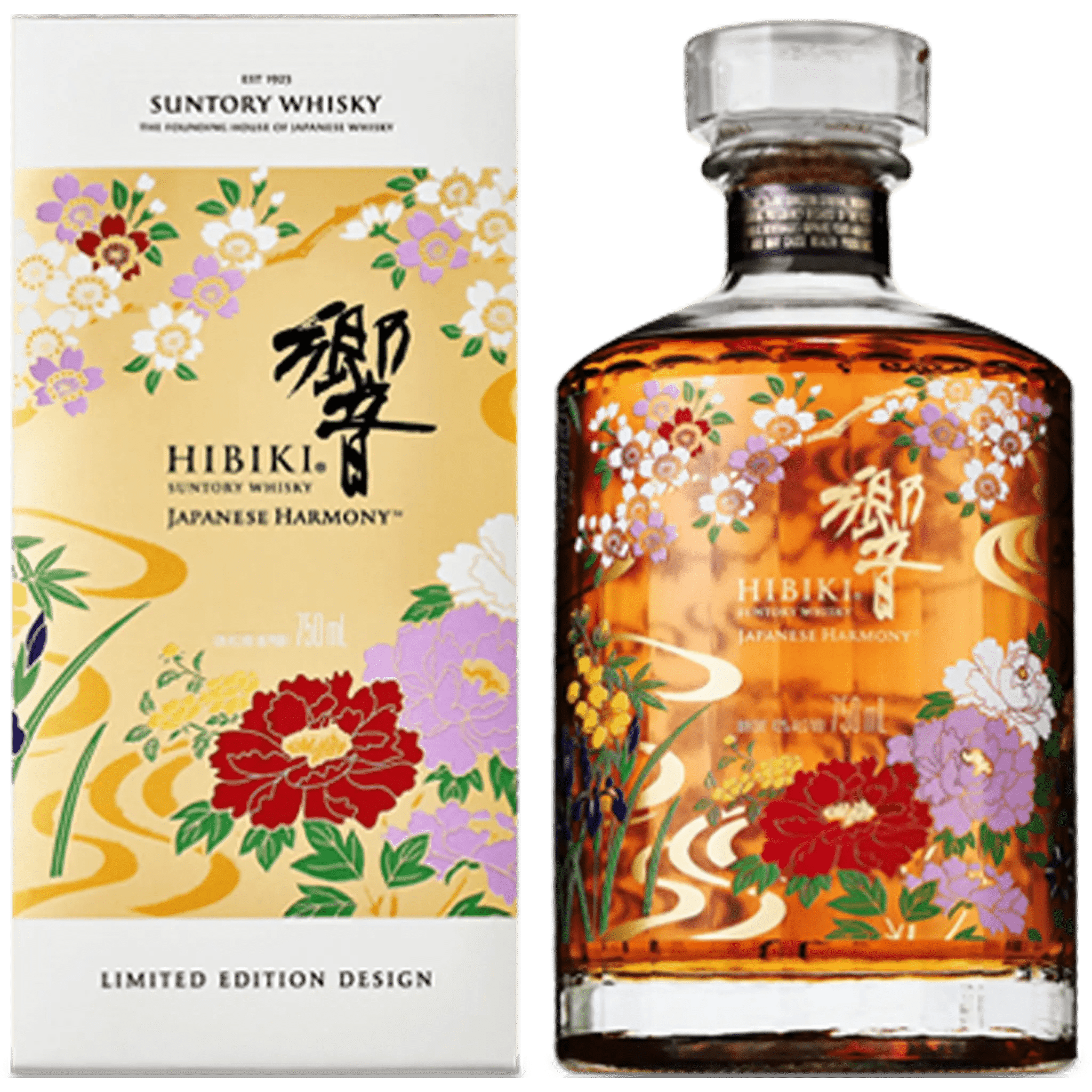 Hibiki Japanese Harmony Limited Edition Design is a beautifully presented expression of Suntory’s renowned blended Japanese whisky, featuring an exclusive bottle and box design inspired by traditional Japanese floral motifs. While the liquid remains the celebrated Hibiki Harmony blend, this release elevates the experience through its artistic presentation and seasonal aesthetic.