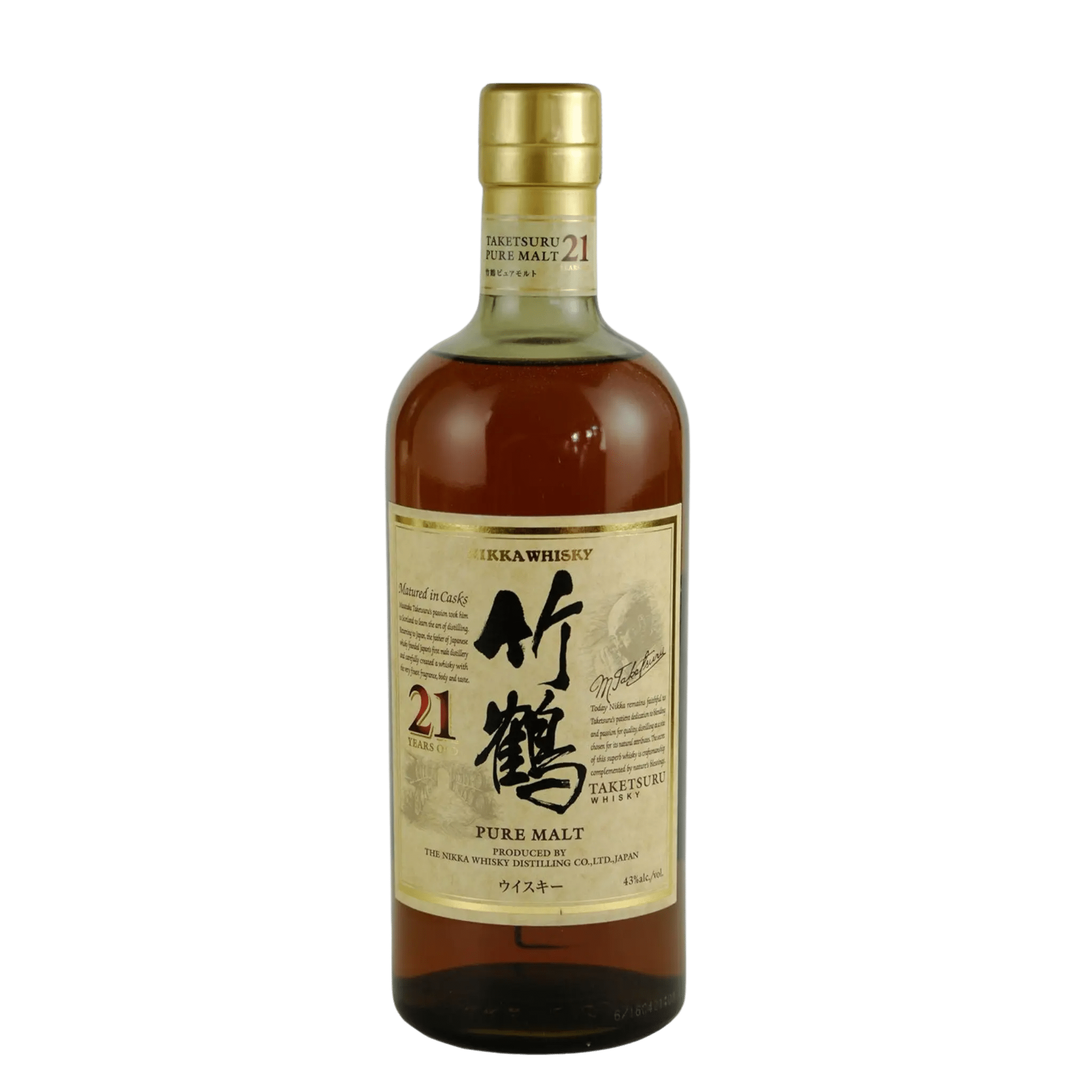 Nikka Taketsuru 21 Year Pure Malt is an iconic Japanese whisky named in honor of Masataka Taketsuru, the founding father of Japanese whisky. This expression is a meticulously crafted blend of malt whiskies aged for a minimum of twenty one years, showcasing Nikka’s mastery of balance, elegance, and long maturation.