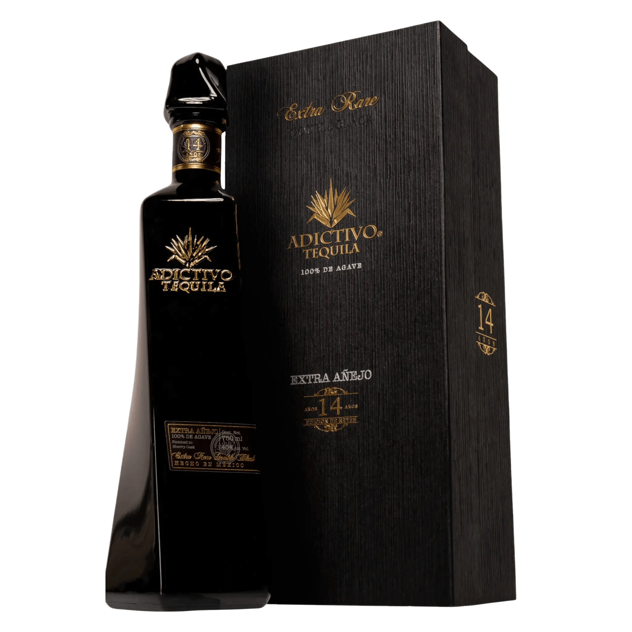 Adictivo Extra Añejo 14 Year Double Black is an ultra-rare, luxury tequila crafted from 100% blue Weber agave and aged for an extraordinary 14 years. Finished in sherry casks and presented in a striking black crystal-style bottle, this release represents one of the most exclusive expressions ever produced by Adictivo.