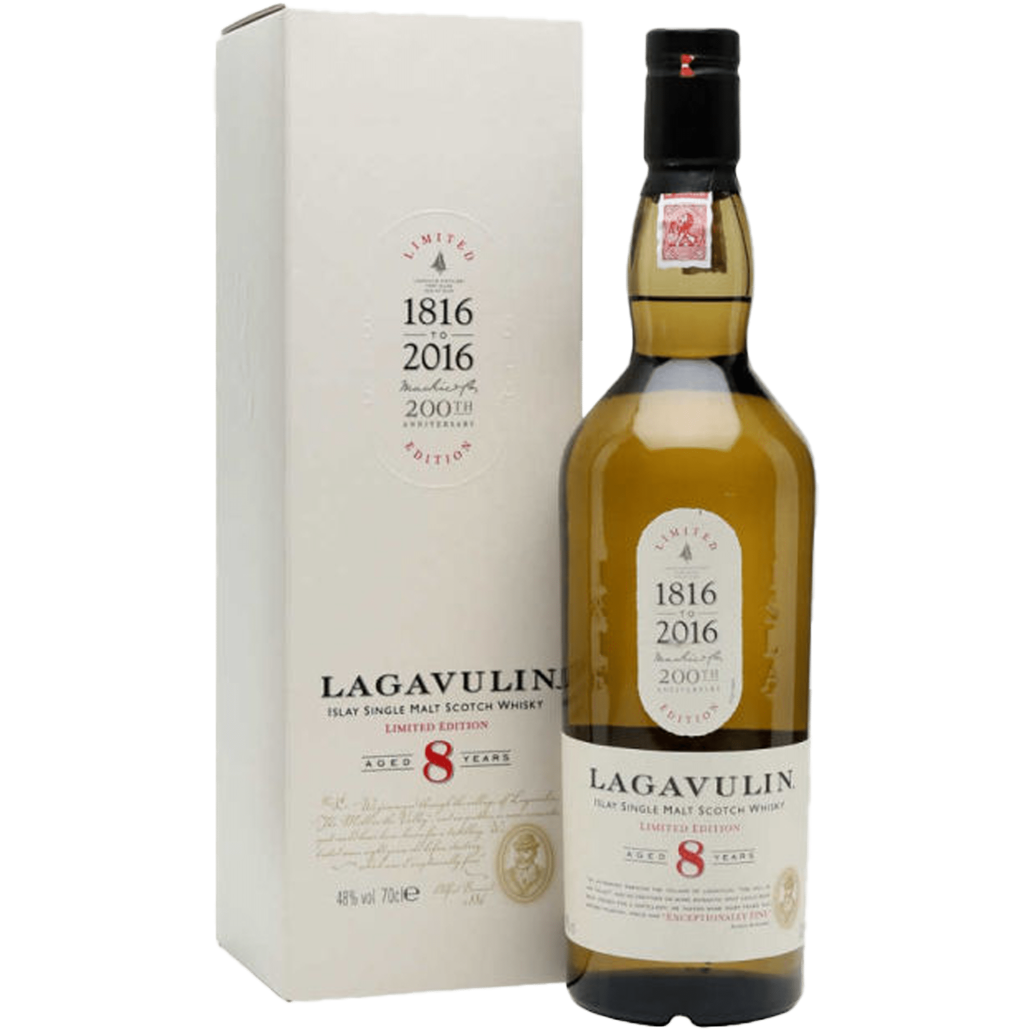 Islay, Scotland- Released to commemorate the 200th anniversary of the founding of Lagavulin distillery. It is big and smoky, with sweet spice and has a clean, long and smoky finish. One of the great classics from Islay.