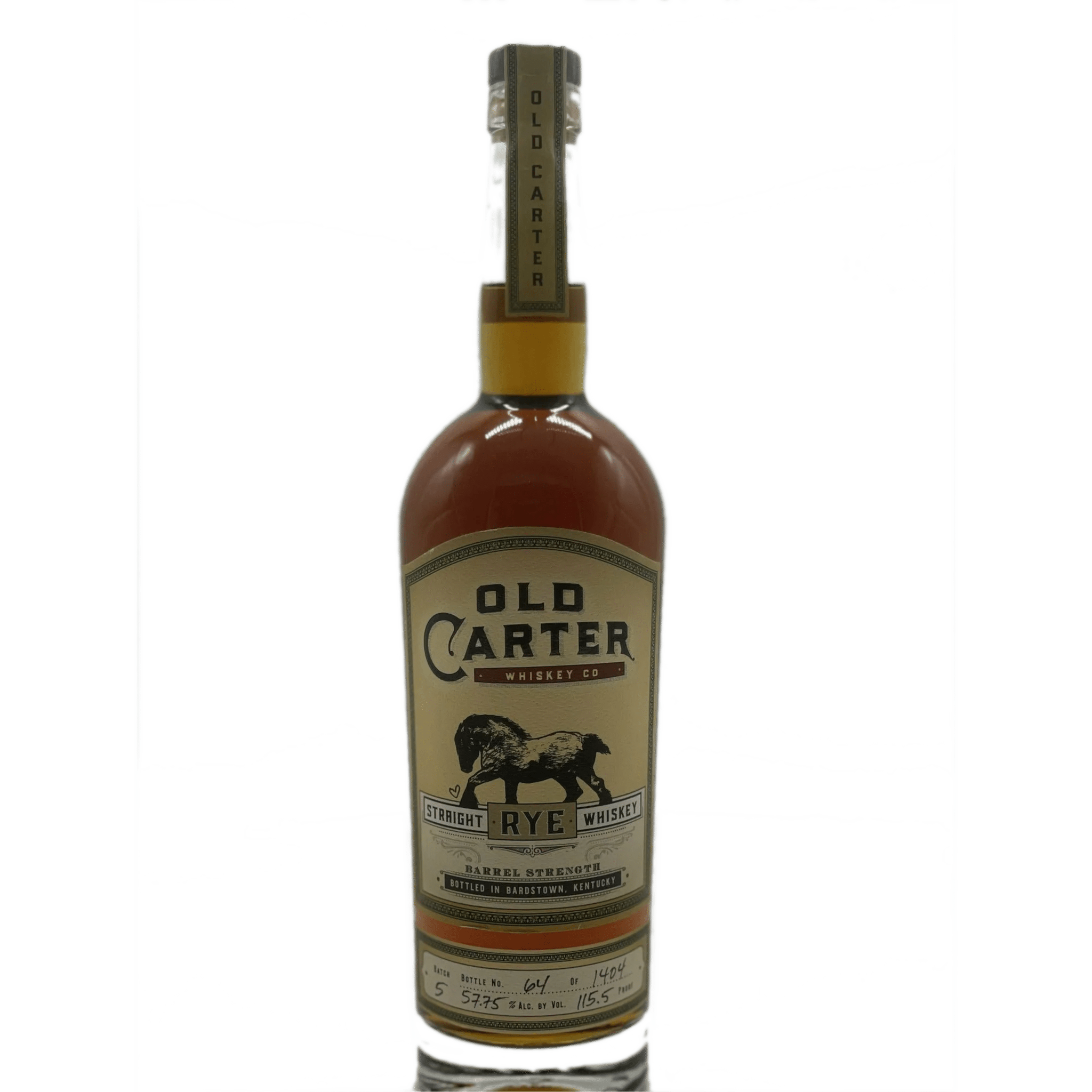 Old Carter Straight Rye Batch 5 - Old Carter Barrel Strength Straight Rye Whiskey has been selected and blended by Mark and Sherri Carter and bottled in Bardstown, Kentucky at 57.75% ABV. Old Carter Whiskey Co.