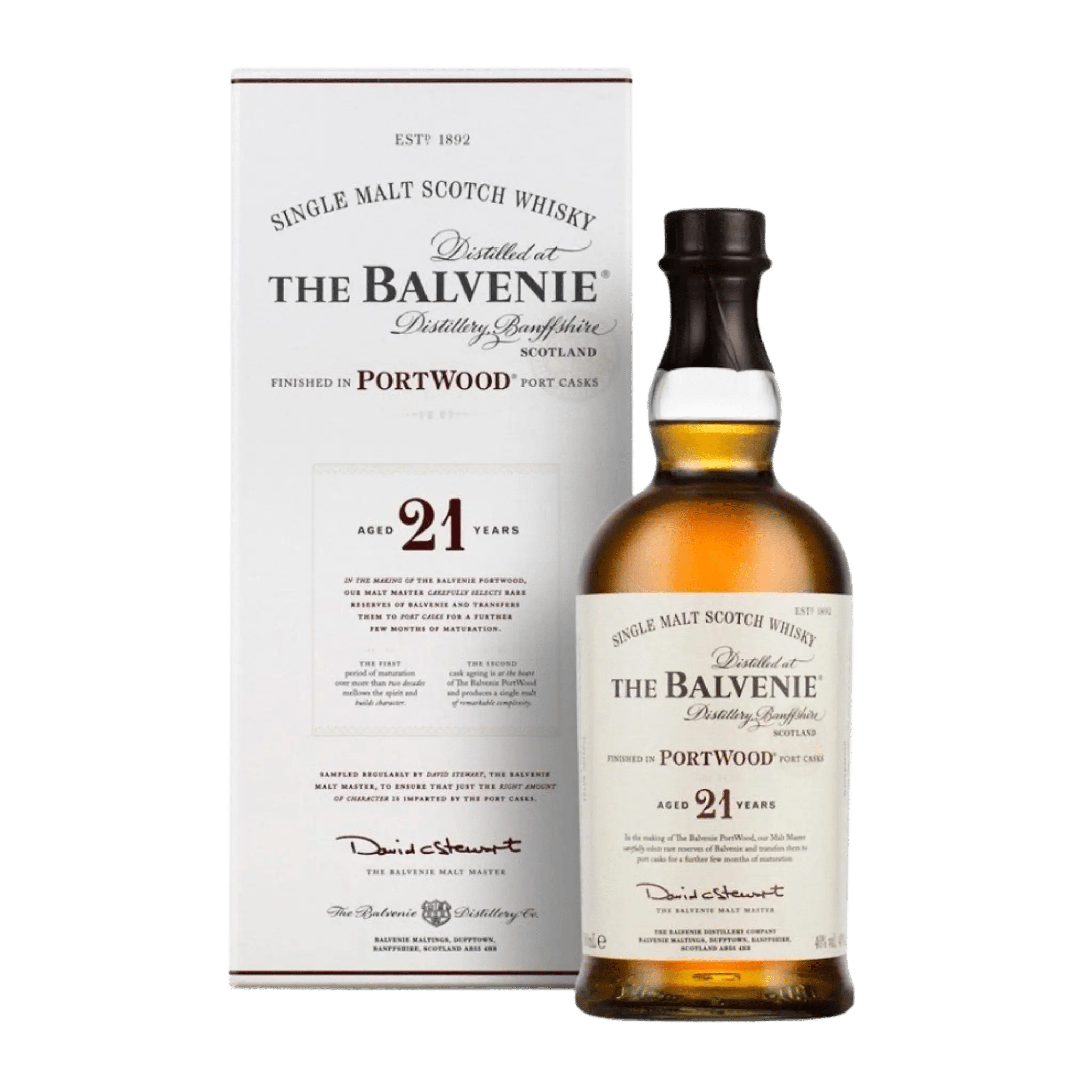 Distilled at The Balvenie Distillery, The Balvenie 21 Year Old PortWood is one of the most iconic and respected finished Scotch whiskies in the world. This expression exemplifies The Balvenie’s traditional craftsmanship and pioneering approach to cask finishing.