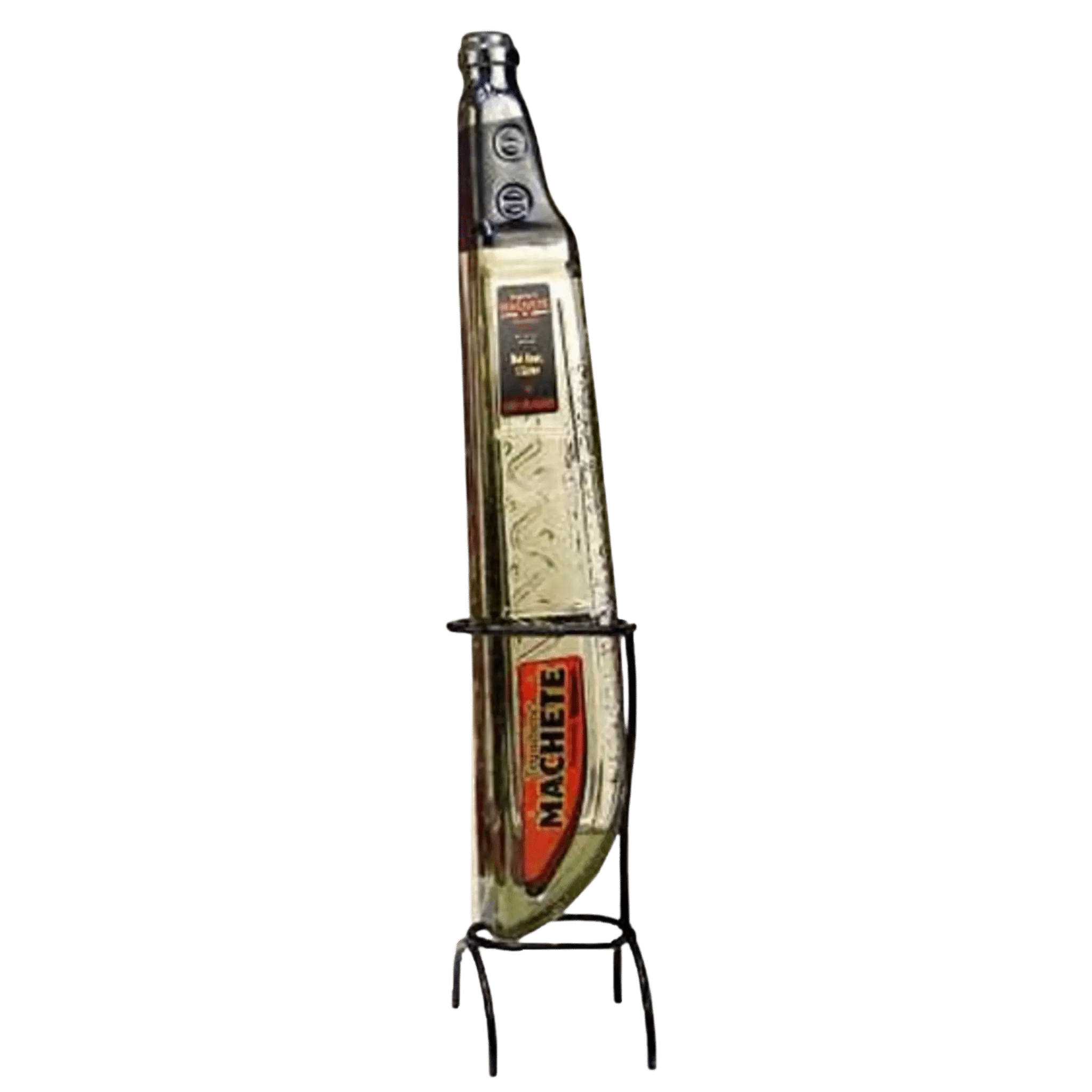 Machete Tequila Reposado is a striking novelty tequila presented in a dramatic machete shaped bottle designed to stand upright on its own display base. Crafted from 100 percent Blue Weber agave, this reposado tequila is lightly aged to add depth and smoothness while maintaining vibrant agave character.