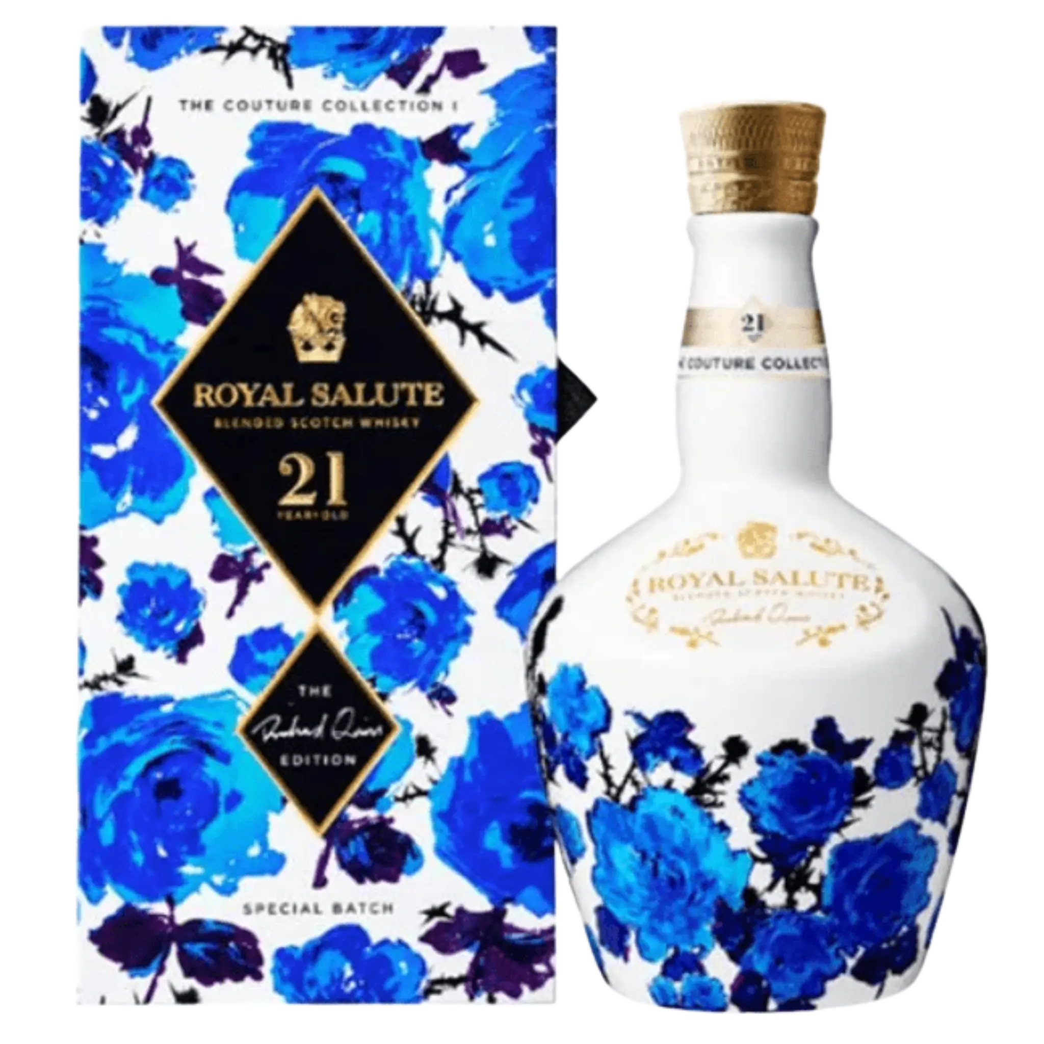 Royal Salute 21 Year Old The Couture Collection I White Richard Quinn Edition is a refined expression of luxury Scotch whisky reimagined through contemporary high fashion. Created in collaboration with renowned British designer Richard Quinn, this special batch release features the iconic Royal Salute 21 year old blend housed in an elegant white ceramic bottle adorned with bold blue floral artwork.