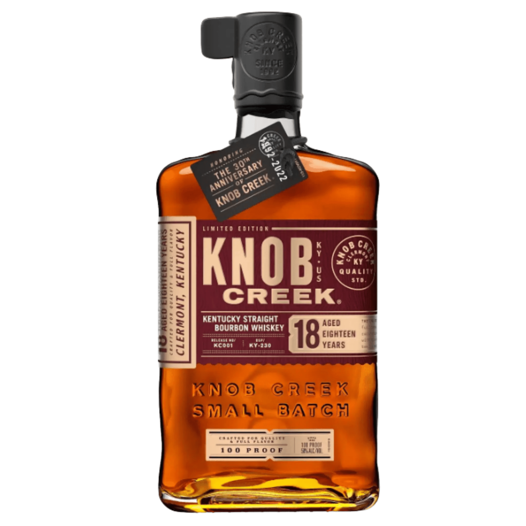 Knob Creek 18 Year Old Kentucky Straight Bourbon Whiskey is an ultra-aged, limited-edition release that showcases the bold, full-bodied character Knob Creek is known for—elevated through nearly two decades of aging. Bottled at 100 proof, this expression delivers exceptional depth while maintaining balance and richness.