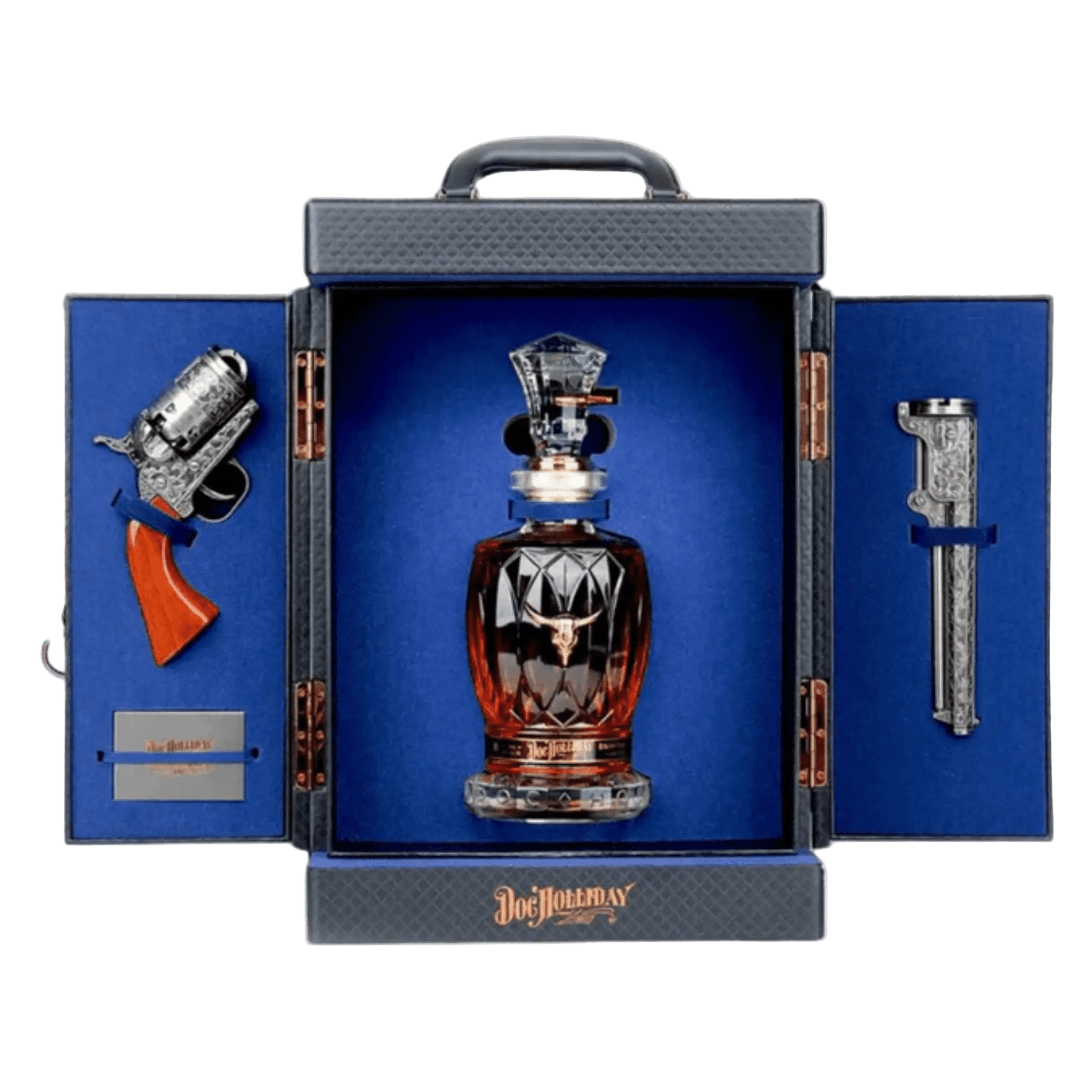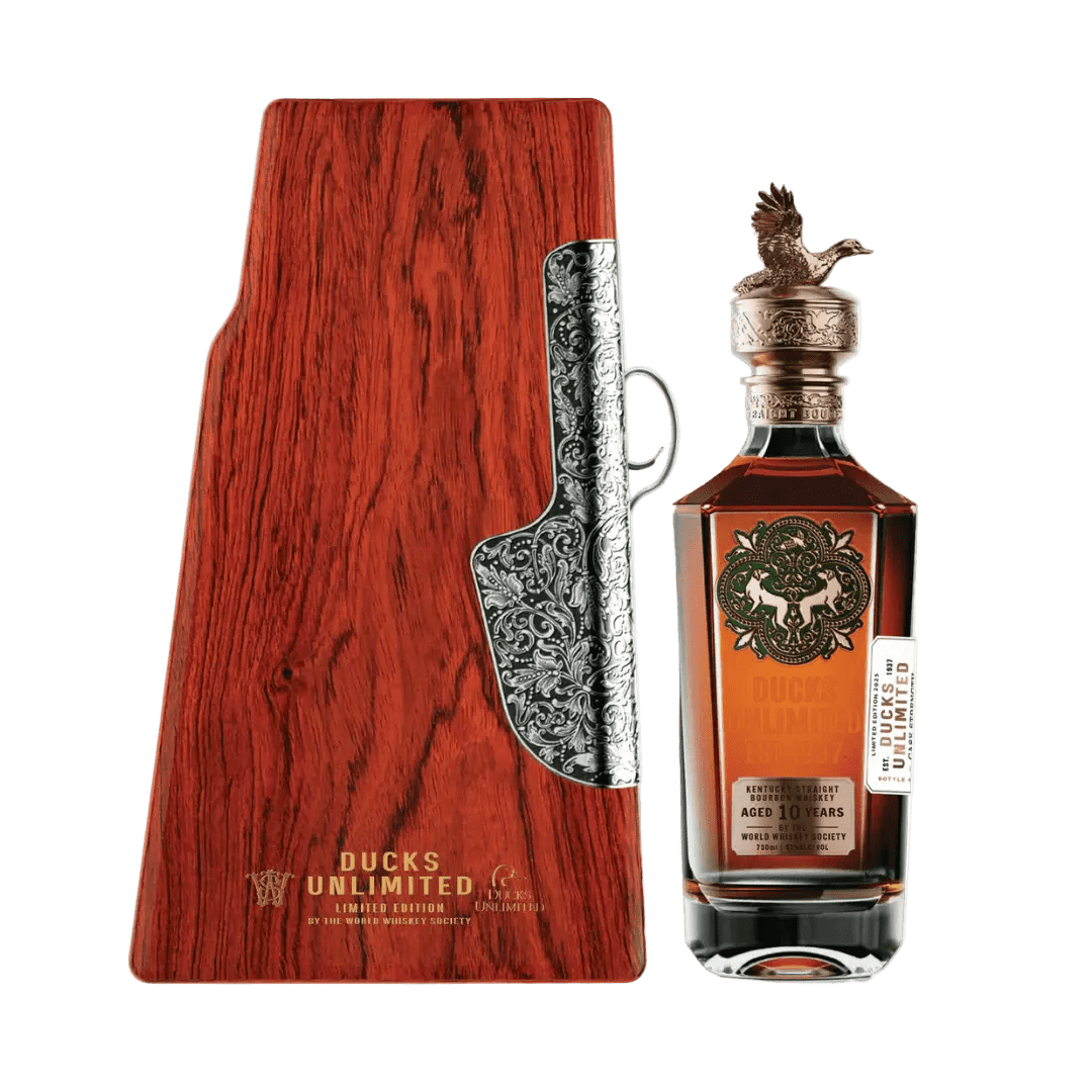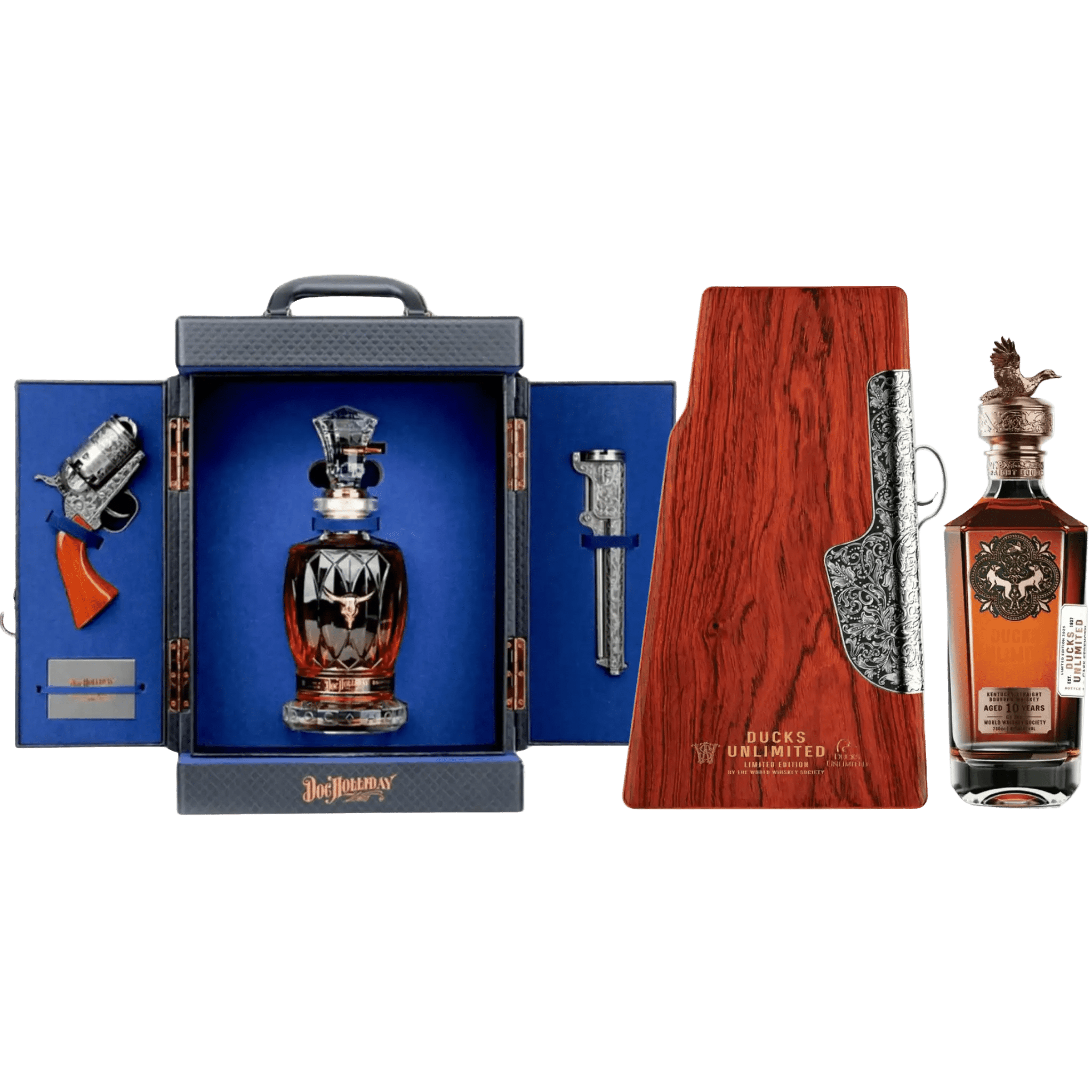 This premium collector’s bundle pairs two standout releases built for whiskey enthusiasts and display worthy collections. The set includes the striking Doc Holliday 10-Year Straight Bourbon Whiskey Revolver Collector’s Set, housed in a luxury case with themed accessories, alongside the Ducks Unlimited Special Edition 10-Year-Old Kentucky Straight Bourbon Whiskey featuring its signature carved display board and detailed bottle design. Together they create a bold Western inspired showcase that balances presentation, craftsmanship, and sip worthy whiskey.