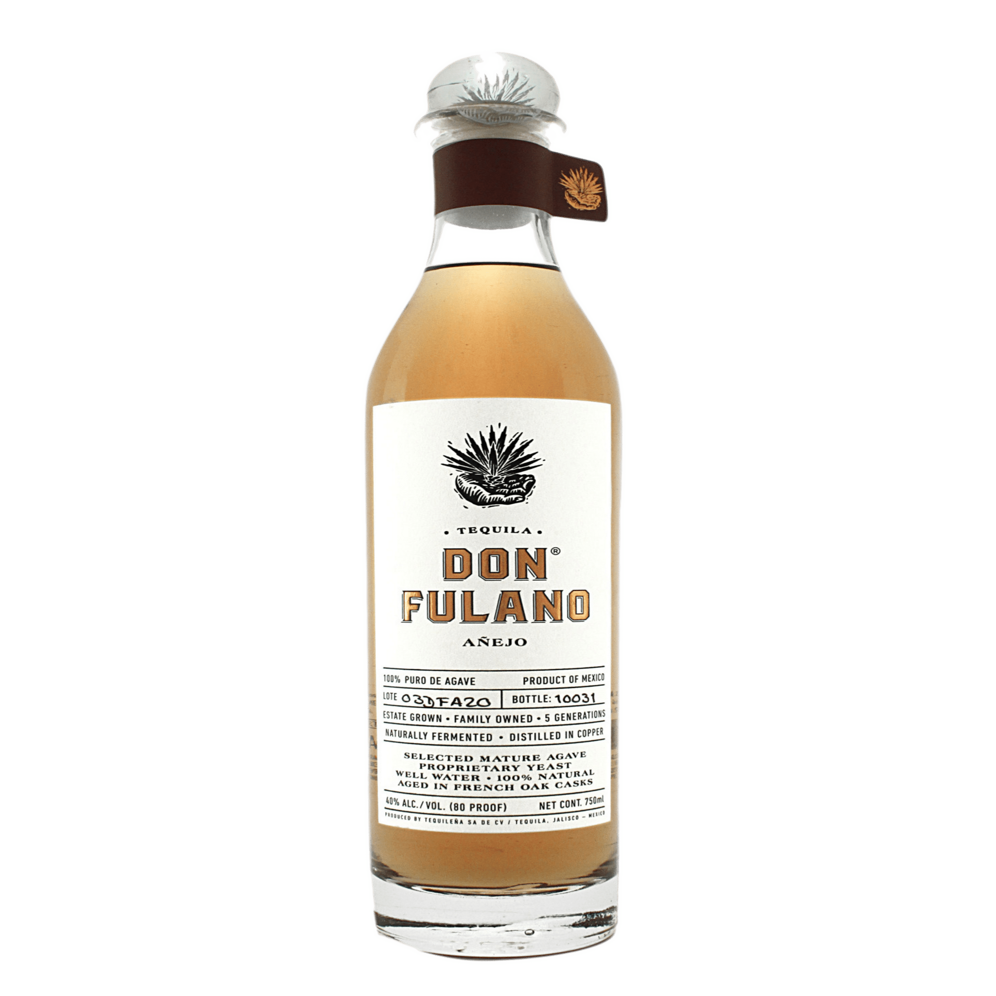 Don Fulano Añejo is a marriage of very old tequilas aged in French limousine and nevers oak casks that previously held wines.