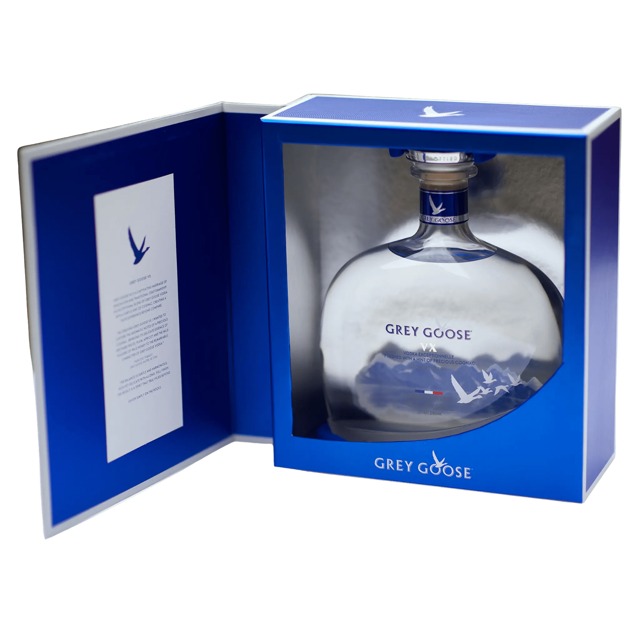 A: VX is finished with a touch of fine French Cognac, adding depth, warmth, and complexity not found in standard Grey Goose.