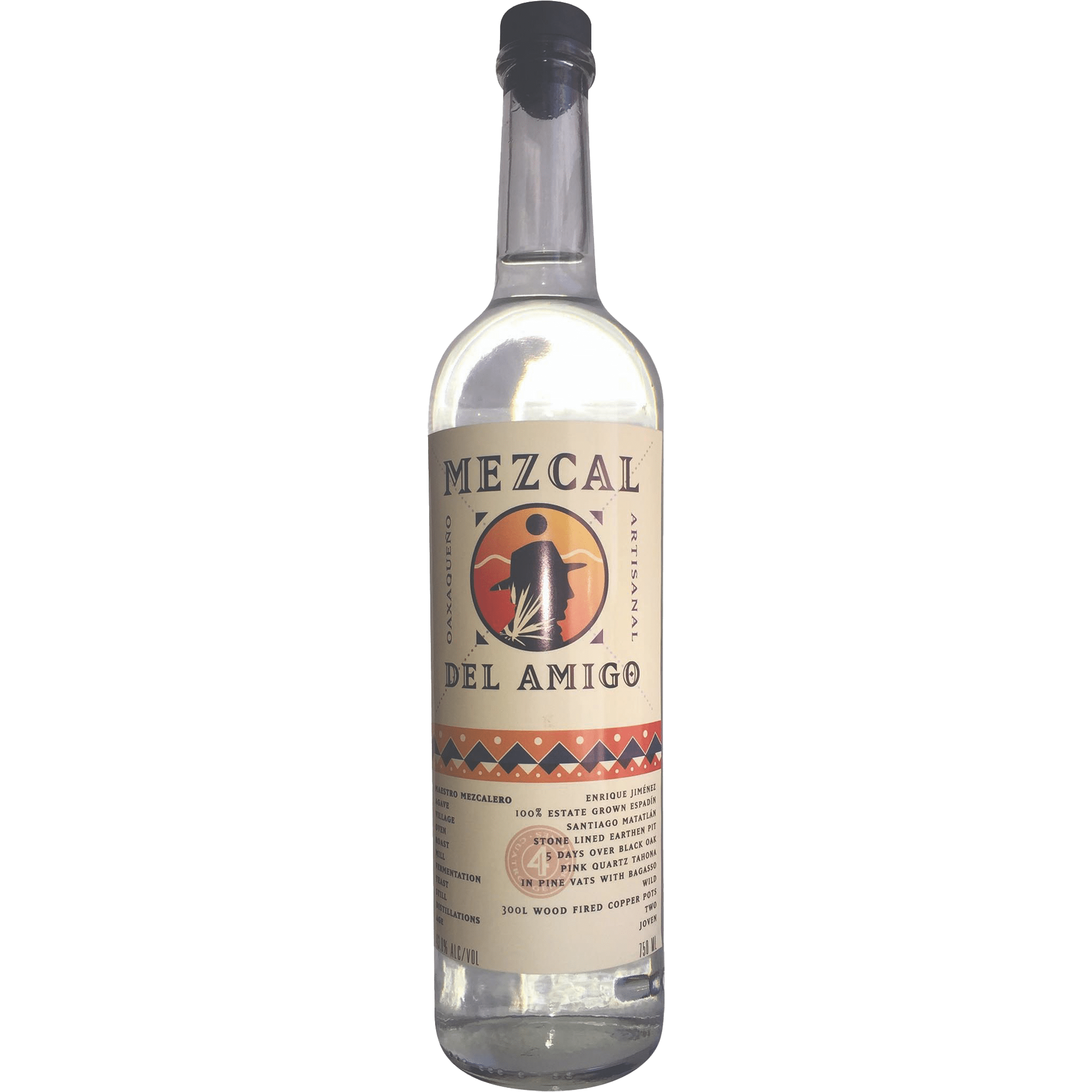 Mezcal Del Amigo Joven is an unaged mezcal made by Master Mezcalero Enrique Jimenez, of Fidencio Mezcal from agave Espadin in the village of Santiago Matatlan, Oaxaca. This mezcal is pit roasted with black oak, fermented with wild yeast, double distilled in a 500 liter wood fired copper pot.