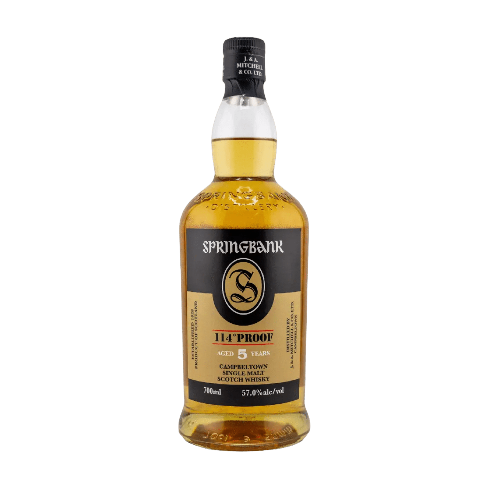 Introducing the Springbank 5 Years Single Malt 114 Proof, a rare and powerful expression from one of Scotland’s most traditional distilleries. Crafted using time-honored Campbeltown methods, this young yet remarkably complex whisky delivers bold peat, rich malt character, and an intense 114-proof kick that whisky collectors and connoisseurs seek out.